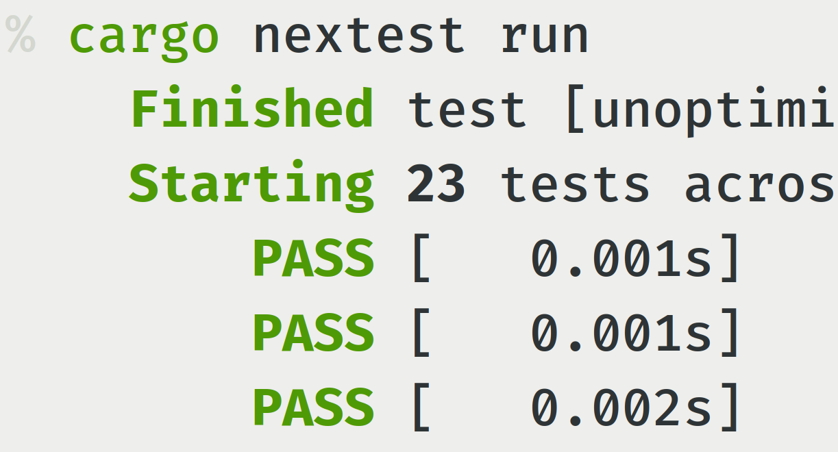 Nextest uses a modern execution model for faster, more reliable test runs.